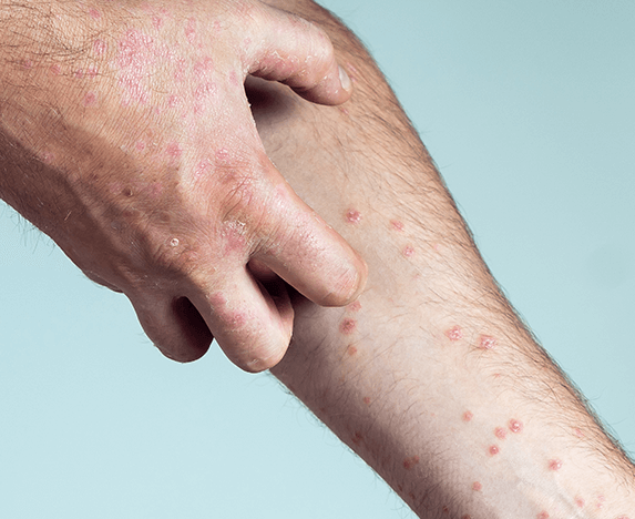 - Itchy blisters that ooze fluid before scabbing.